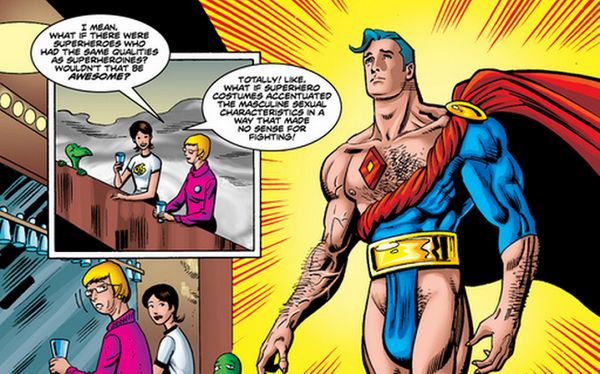 Last fall, I got inspired by a conversation with a friend to rant on PL about the inequality of costumes in comic books. Basically, I went off on the fact that so often female characters wear costumes/clothes that are magically gravity defying and that I would not want to be a super-hero because my concern wouldn’t be saving someone but keeping my naughty bits covered.