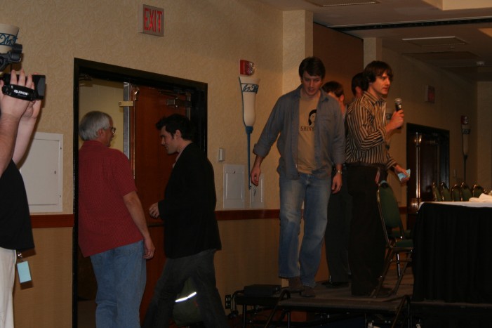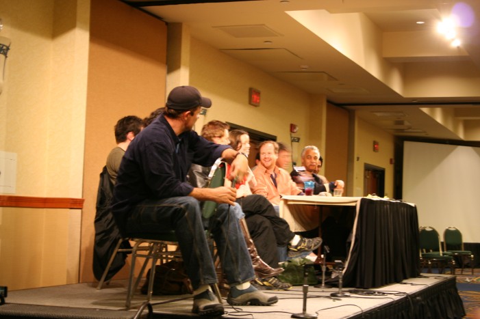 Serenity Flanvention, Burbank, December 2005 with guest Nathan Fillion, Adam Baldwin, Morena Baccarin, Sean Maher, Jewel Staite, Summer Glau, and Ron Glass. Special appearances by Jonathan Woodward, Dennis Christopher and James Leary. Oh, and some guy named Joss Whedon. Photos with cast can be found on the people I’ve met page.