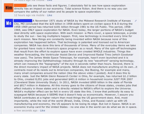 I really do love the I F*cking Love Science FB page and as such, here’s another gem I’m sharing that they’ve recently posted. An answer to the argument of whether or not NASA was worth the money…