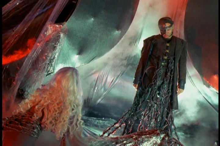 Hey, fellow travelers of the Uncharted Territories, its time for some mini-caps on Farscape. Last time, Crichton got twinned, and not by his own choosing. This would be enough for Moya’s crew to handle, but now they have bigger problems: a Peacekeeper black ops squad lead by Aeryn’s mom is after them, and the group has to separate, with a Crichton being on Moya and Talyn. Oh, and the Crichton on Talyn (we’ll call him Black Crichton, based on his t-shirt) has made the next step in his relationship with Aeryn. How will Green Crichton (the one on Moya) react to Black Crichton sleeping with his, um, their, wait, I mean… Look, let’s just get to business, okay?