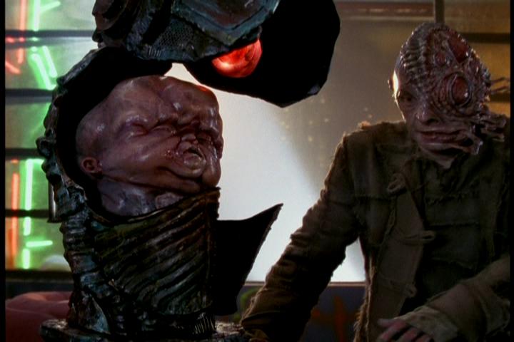 –My guess: I think Aeryn realized the guy claiming to be her missing father wasn’t really him because of the insect half of his face (I keep thinking about that quip from Claudia Black regarding that faux reveal on the “Jeremiah Crichton” commentary track from season one: “My dad is a half lobster? I did not know that.”)