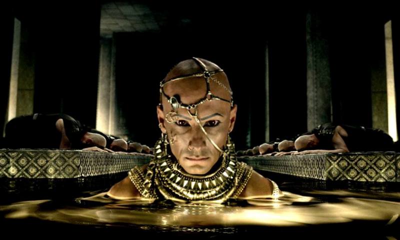 The story begins at roughly the same time as the first movie with King Xerxes (Rodrigo Santoro) advancing his army towards Greece in a campaign to take over the world. We also learn how the “God King” became a literally larger than life, imposing figure who would stop at nothing to conquer everything in his path. Partly responsible for this transformation is the Greek general Themistokles (Stapleton) who has led his men to multiple victories against seemingly impossible odds.