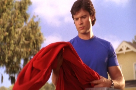 –Rachel leaves Clark a cape for a goodbye present. A red cape.