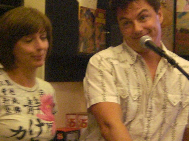 Not too long later was SDCC 2009. I had quit my job at a prison the day before the convention (not for the convention, I went back to school and had to move) and somehow this came up in conversation when I was having John sign the book everyone else had signed at the Chicago event and enjoying chatting with John and Scott. And somehow my boobs also came up in conversation. I really don’t remember how this happened- though I have an amazing rack. And somehow this turned to John asking permission- and getting it (hi, not like I’d refuse him, let’s be honest- he’s to faboo)- to grope me. Right there in the middle of SDCC. And still I have no picture! Seriously, this would’ve been an epic photo- the one of Angus Oblong doing it sure is.