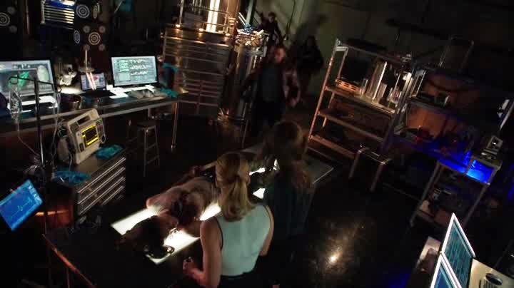 Home Invasion. Team Arrow is staking out a house they think the boomerang assassin is hanging out in, and that suspicion is raised by the doors being rigged with explosives. So, the doors get blown, and Ollie and Roy enter to find no one there, except the team of ARGUS commandos that enter afterwards. After being told to back off the assassin, the Team reunites at Arrow HQ to discover the victim was an ARGUS agent. Later, as Felicity is in her office at Palmer Tech, she gets two surprise visitors: Caitlin and Cisco from STAR Labs! And hey, they want to collect that arrow that killed Canary and visit the Arrow Cave! It’s NOT the Arrow Cave, Its the Arrow HQ!