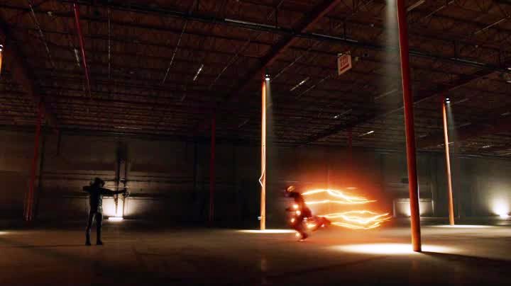 Being In Five Places At Once. Flash and Arrow accost Boomerang at the train station, only to find he has a escape plan: five bombs across the city. As Arrow faces Boomerang, Flash gets a look at one bomb and discovers he can’t disarm one without doing all of them at once! His solution: speed Team Arrow and Team Flash’s support team to each of the bombs and they defuse them at the same time! Boomerang is caught, and just for good measure, gets impaled in the hand with an arrow by Ollie. Barry doesn’t mind much.
