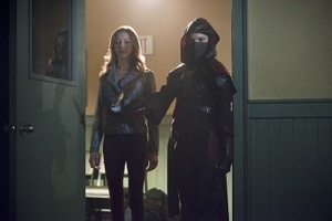 Welcome back from that brief break, Arrowheads! A lot of things went down last episode, so let’s just hit the big bullet points. Ray Palmer got his ATOM suit working along with his mojo by sleeping with Felicity. Thea gave up dear ol’ dad to the League of Assassins, and when that wasn’t enough to cure her of that whole “murdering a friend’s sister under the influence of mind-altering drugs” guilt, she offered herself up to Nyssa. Ollie and Diggle went to retrieve Malcolm from Nanda Parbat, but got captured. And then, we discover Ollie’s last experience with Ra’s was the world’s deadliest job interview, because Oliver Queen was offered the job of being the head of the League. Hopefully the League has a good dental plan.
