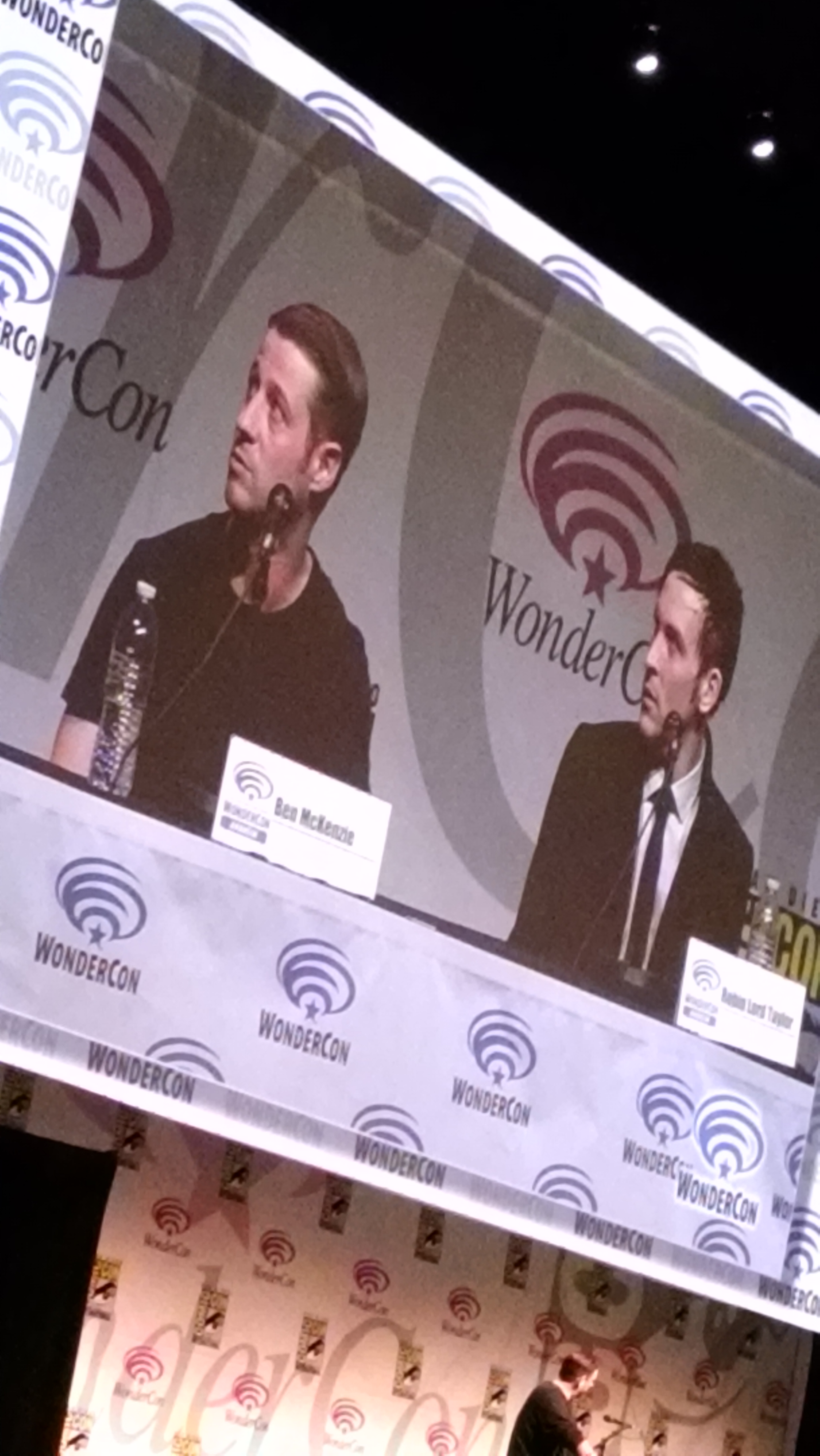 The Gotham panel presented a smaller group- which allowed for more time for in-depth answers- John Stephens, Ben McKenzie, Robin Lord Taylor, and Cory Michael Smith. Just to put this out there- because it is clearly very important before we move onto more in-depth information- the Gotham boys are pretty. And the audience was not afraid to let them (Ben McKenzie, in particular) know.