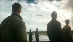 –So that was a fun and complicated visual effects sequence which makes up the climax, which is O’Neill and Teal’c ejecting from the glider, using the ring transporter on the scout ship to beam them out of space before they die.