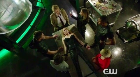 British Invasion. John gets a welcome to Arrow HQ where the Team and Quentin are waiting to help Sara. John sets up his little operation, but needs two people to go into the spirit world with him to help recover Sara’s soul from whatever holds it. So Ollie and Laurel get to go on that trip with John, and it turns out the spirit world looks a bit like Nanda Parbat. They find Sara in a Lazarus Pit and pull her out while Constantine fights a spirit League assassin (really, Ollie or Laurel can’t do that? Leave Constantine to that?). Well, the trio recovers Sara’s soul, and it seems she’s okay so far.