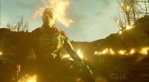 And like that, the cavalry moves in (or in the case of Atom, out of Stein’s pocket) as Savage and the rest of the people inside attack our heroes. Savage decides to cover his escape by turning in the timer for the nuclear warhead, so Jax and Stein form Firestorm and take the bomb into a desolate area, where Firestorm can absorb the blast into himself. Outside of a small crater, Firestorm does just that.