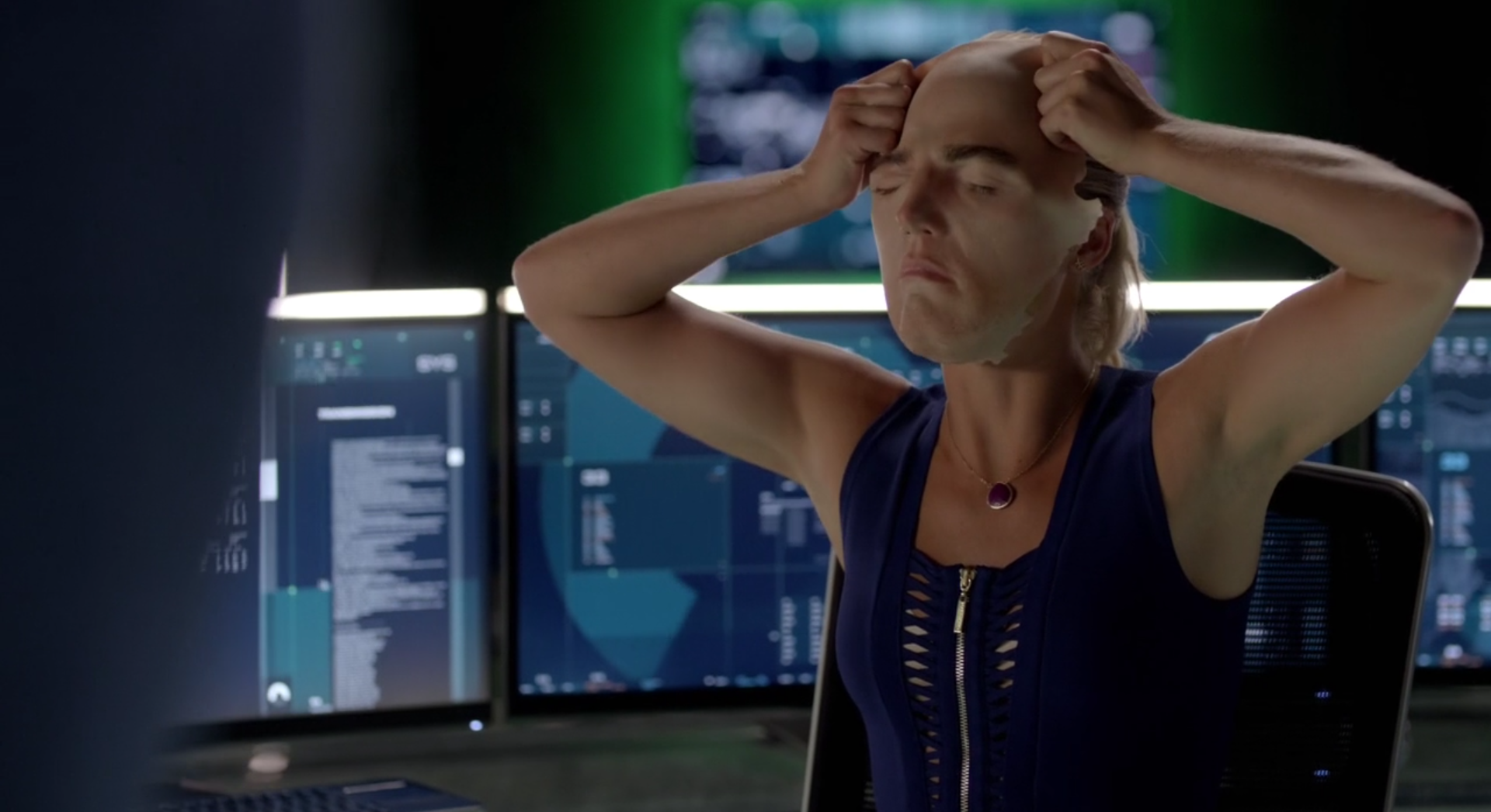 The Decoy. Cut to Quentin giving a press conference that Oliver Queen was killed…which Ollie and company are watching from the Arrow Cave! Then, “Ollie” enters, blood soaked suit and all, and revealed to be Christopher Chance, the Human Target! Diggle called him in to play Ollie for that day, and Chance rigged it so “Ollie” would appear to have been killed, and Church could move forward with his plan. Talking to Chance, Ollie inadvertently learns from the philosophical loner that Felicity has a boyfriend. He visits her and asks her about it, and she admits she didn’t want to say anything about it because she wasn’t sure what it was yet. Suuuuuuure.