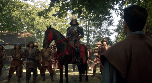 Well, leave it to a simple test of Nate’s metal skin to steer things wrong. Ray tests Nate by shooting him with the ATOM suit’s blasters, and by accident (and because this test goes on in a cargo bay, not in a safe place), an airlock gets blown open and Nate gets sucked out into the timestream! Ray goes after him as the Waverider closes the airlock and has to follow the two overboard men. And the ship follows them to…1600’s feudal Japan!