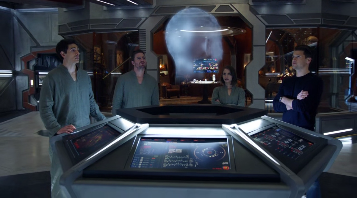 So here we are, 100 episodes of the gritty vigilante drama Arrow. In a bridge of a timeship as they travel through space. Less weirder than most CW shows’ trajectories.