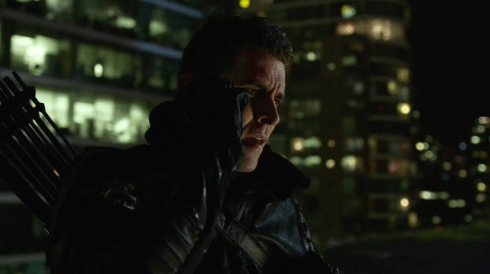 Tribunal. The first hearing presents a strong case against Ollie and the Green Arrow (played by Prometheus to kill Billy or not), so that’s not good. On the limo ride out of the hearing, Ollie, Thea, and Quentin (with Dinah as security) discuss how the hearing is going, and Thea makes a disturbing suggestion: use dead Billy as a scapegoat to tilt the hearings in their favor. Ollie shoots down the idea immediately, and then in a surprise, Vigilante shows up to shoot up their limo! After a gnarly limo flip, Vigilante offers to spare the passengers if Ollie gives himself up. But Dinah blasts the dude with a Canary Cry, and after Ollie tries to lure Vigilante away, the cops show up and our gravely voiced ski goggle wearing psychopath escapes.