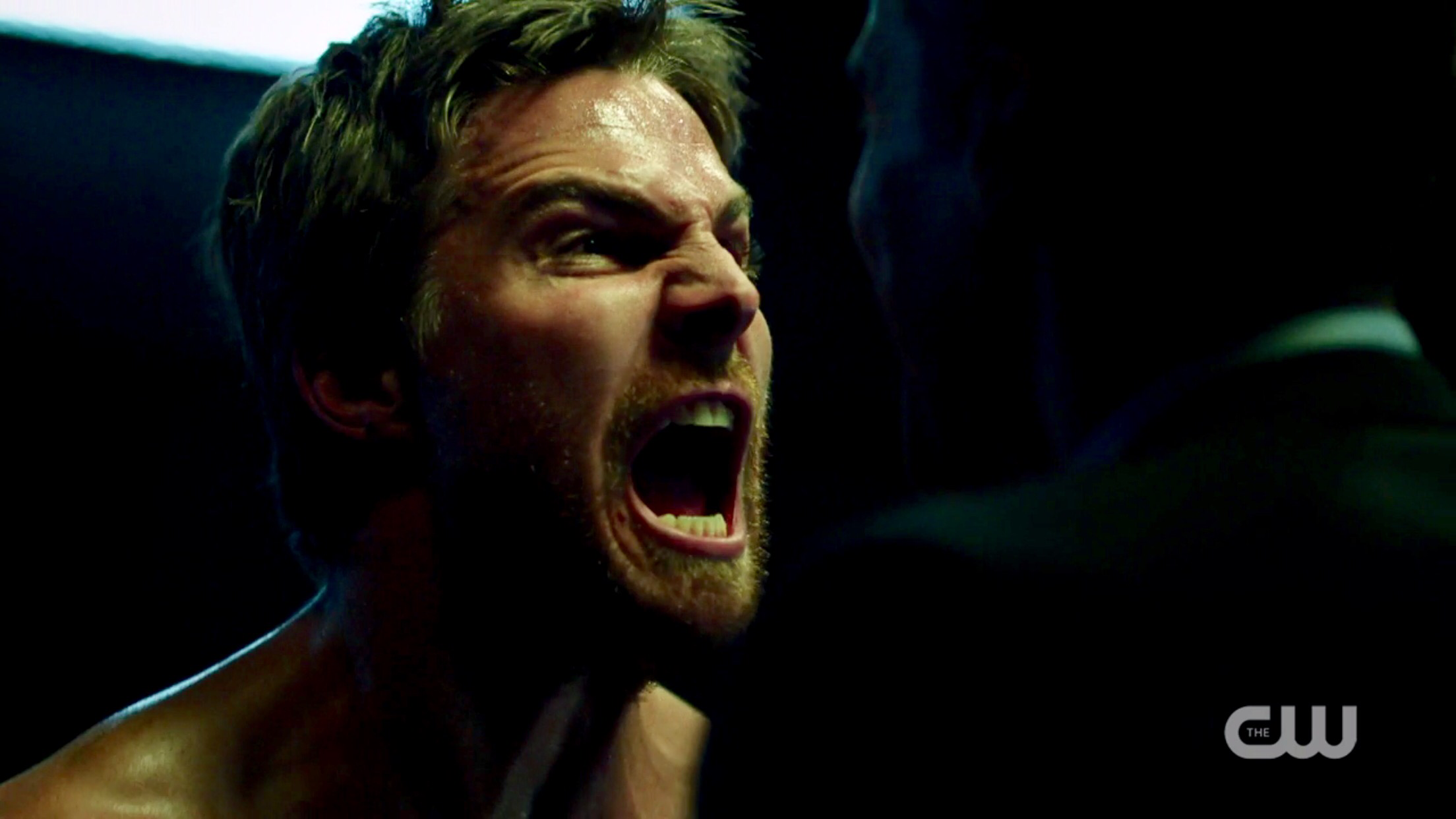 Ollie is shocked by this turn of events, and can barely contain his anger. Adrian asks why did you kill all those people as the Hood when you could have easily brought them to justice another way? Ollie can barely say it, so when Adrian asks him to speak up, he gets this: