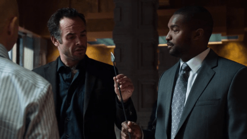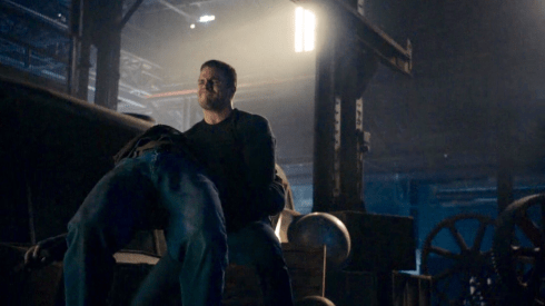 The next day, Ollie stops by Thea’s room to give her a little souvenir from the island, and then Tommy arrives to take him on a trip across the city. Also, Tommy takes Ollie to see Laurel, who is now working at a public defender’s office, and surprise, is still upset her boyfriend slept with her sister and her then dying out at sea. That seems more pleasant for Ollie than what happens next: a group of masked men kidnap him and Tommy, and start torturing Ollie while Tommy is still unconscious. They want to know what Robert told his son, and Ollie instead busts loose and shows mad combat skills by murdering the guys.