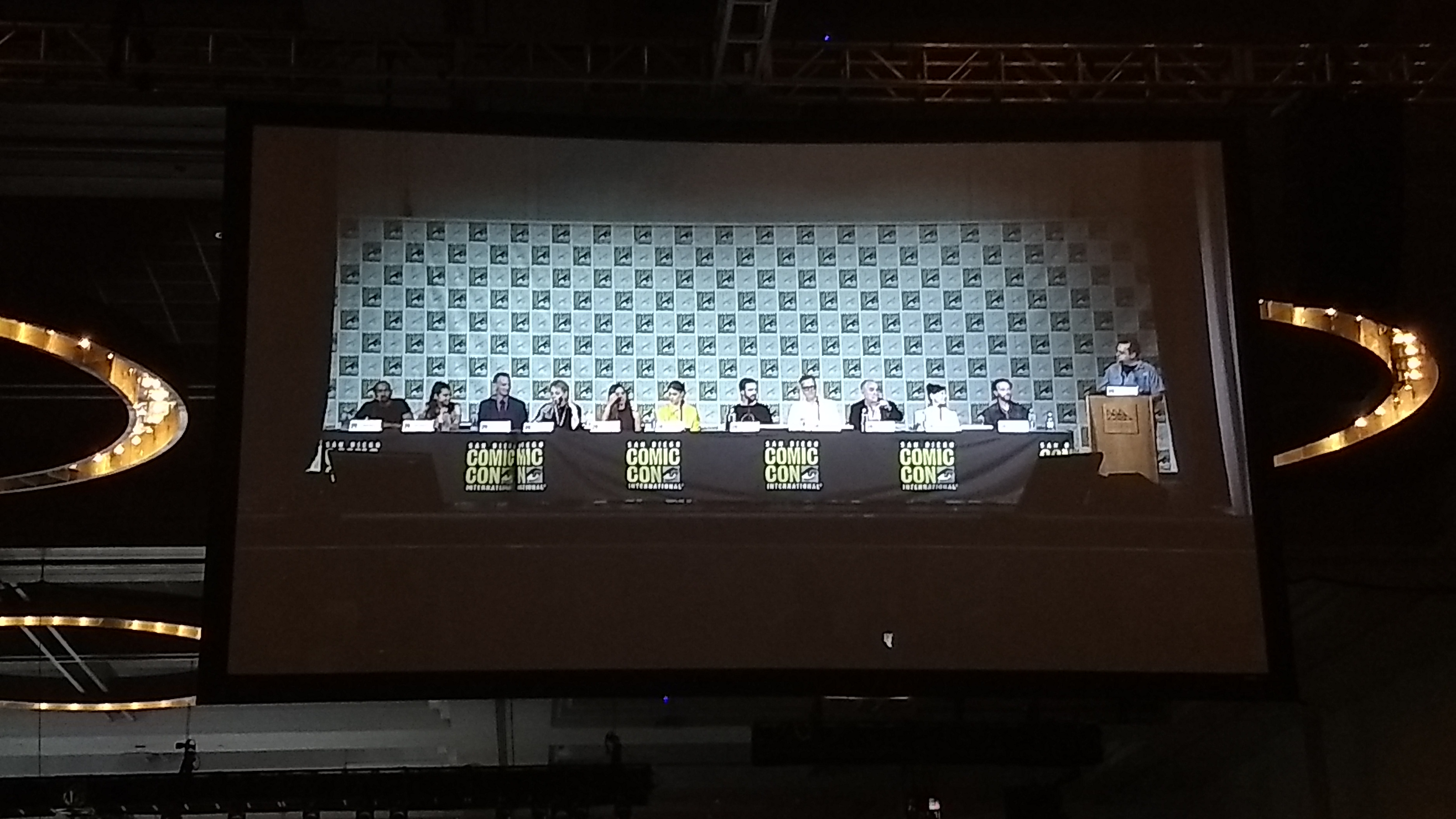 Then the Legion panel came out and the whole cast was there! (Dan Stevens, Rachel Keller, Aubrey Plaza, Bill Irwin, Jeremie Harris, Amber Midthunder, Jean Smart and the creator Noah Hawley) They announced that we were getting free t-shirts at the Comic Con merchandise room. I love getting Comic Con swag! (I also got a keychain from The Strain). Exclusive News- they announced the second season was set for 10 episodes. Unfortunately they have barely started writing the second season, so there was really nothing to tease. However the cast was fun, Dan Stevens was delightful, and I was excited to be part of a room of fans who loved the same show I did. Jeph Loeb made a great comment about the Q&A session from the audience members, who were mostly female. He stated it was great to see women here interested in the show, “proof” to him that superheroes aren’t a “boys” thing, but a human thing. It was an important statement considering the recent success of the blockbuster hit Wonder Woman.
