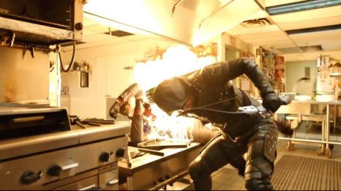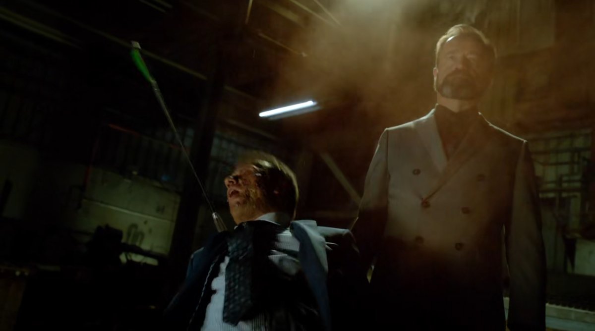 I’m sure William had more pertinent questions regarding that strategy, but Ollie is distracted because Felicity calls him with info on where Anatoly is. The Team meets up outside a Bratva owned restaurant and raid the place, knocking out some of Anatoly’s goons. Ollie retrieves the hostages, only to find the CEO is not among them. Also, Diggle’s still has some shakes, which is still worrying Dinah to no end.