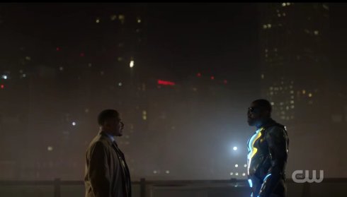 Unfortunately for everyone, it goes badly when Jefferson confronts Tobias, only to have Tobias’ sister get killed by stray gunfire and Tobias escaping injured. That’s bad enough, but we learn Tobias had a hit going at the same time on Lady Eve, one where she got fried by lightning guns and points to Black Lightning as the culprit! And what about that scene with LaLa (you remember him?) NOT DEAD and waking up in a motel room with some weird ghost LaWanda hovering over him? What does any of that mean?