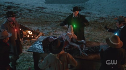Following the last episode of Mallus escaping from his time prison, Rip Hunter buys the team some time to escape by blowing up a time drive with him holding it (R.I.P. to Rip?)! The Team make their way to the time blind spot of the Old West era Salvation, North Dakota with our ol’ buddy Jonah Hex to figure out what to do. That reprieve is short lived, because Mallus sends a possessed army of pirates, Vikings, and Romans to get those totems the Legends possess. Meantime, Ray takes Damien Darhk to a bit earlier before Mallus revealed himself in order to save Nora, and Damien does that…by becoming Mallus’ host body!