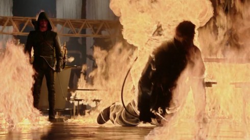 This connects several firefighters who were known as the “Fireflies”, and that all the victims were part of that group that disbanded after a deadly fire that claimed one of their own. It just so happens there’s going to be a fire department charity gala at Ollie and Tommy’s new club, and Ollie has put together something horrifying: their lost man, Gabriel, survived that fire from years ago, and wants revenge against his former partners for leaving him to die. And surprise, Gabriel shows up to start lighting the place up to get to his next target, pushing Ollie to get back into the Hood (good thing he didn’t have to go far to get it) to face him. And somehow, Ollie talks Gabriel unintentionally into torching himself to death. Probably not Ollie’s original plan.