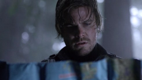 In our big flashback segment, Ollie has to contend with his mystery archer friend being captured by Fyers, and runs afoul of one of Fyers’ goons. They fight, go over a cliff, Ollie survives, the goon doesn’t. So Ollie decides to steal the goon’s clothes and finds a map of the island. I guess he’s gonna rescue his unknown savior, and that should be no biggie, right? In the present, Ollie has had a few weeks to recover from his encounter with the Dark Archer, with zero results in finding Walter and still names to cross off his list, but he seems to be lacking a need to jump back into the vigilante game.