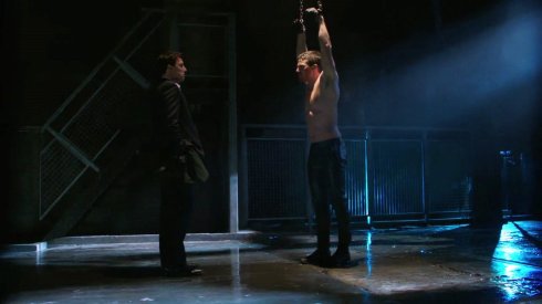 We join up in the present as Ollie is being strung up by Malcolm, who tries to convince Ollie that losing his wife in a mugging in The Glades is a good excuse for murdering thousands of people there. Ollie doesn’t buy it, and Malcolm leaves him there. Good thing Ollie had a tracer in his boots, because Diggle arrives to save him. While this is happening, Felicity has been picked up by Quentin for all that suspicious hacking into the Merlyn company, when The Hood calls, informing Quentin about the plan to destroy The Glades. He’s all for saving lives here, but when he brings that questionable info to his superiors, he’s suspended. And Moira learns that timetable to The Undertaking has been moved up to the following night.