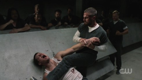 Later on that day, Ollie is taken by guards to Level Two of the prison, where Brick warns him the only way anyone has ever left that level is through the morgue. Well, it’s not like Oliver Queen hasn’t been dead before. But we’ll see what that place is about next time.