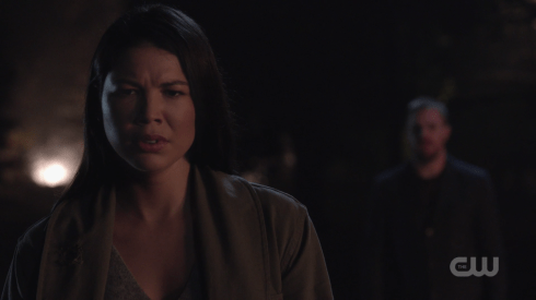 At ARGUS, Lyla tries to get Diaz to give up what she knows about this mystery cabal led by some guy named Dante. He claims he doesn’t know who that is, even though Lyla knows this Dante was responsible for retaining the Longbow Hunters for Diaz. At Ollie’s flat, he’s still trying to deal with the fact his father had a hidden daughter, when Felicity’s investigation reveals another shocker fact. The secret payments that were made for this daughter, Emiko, were done by Moira Queen!