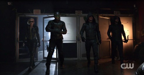 After Tommy and his cronies Dinah and Rene are arrested, the heroes meet up where Ollie gets those dwarf star particles. It seems it’s time to go home, and Diggle offers to join Ollie on his mission, even knowing there may be no way to save Ollie from his fate. But there’s a stop they have to make before they head back to their Earth…