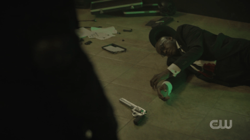 A lot of drama happens, and that’s not just because of what happened to poor Tavon last episode, although some of it happens because of how he died. For one thing, Anissa is barely fighting off that poison that Khalil/Painkiller cut her with, and it’s not until Gambi finds a cure that she seems fine. Meantime, Jennifer is looking into her new fellow metahuman Brandon, and he seems to be very interested in researching the Pierce clan. And Jefferson is lashing out as Black Lightning, which is leading to some serious threats from Odell.