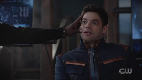 Meantime, Lex is pulling strings with others, like getting Lena to get back in touch with Andrea to learn how Obsidian Tech connects with Leviathan, only to learn the only connection is Andrea’s new business partner, a rather familiar looking blonde woman in the Leviathan fold. Lex then manages to get some future particles needed for Lena’s mind control project from Winn’s time ship, so there’s some payment for Lena’s work this episode. As if Lex wasn’t busy enough, he takes the time to tell Kara to get that pesky William off his back or there will be dire consequences. Oh, and it looks like Kara might have a thing going with William. Sigh.